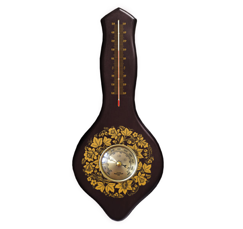 Настенная метеостанция изготовлена из натурального дерева с росписью в технологии гравировка и покрытием "под золото". В комплект входит барометр и термометр. Эта настенная метеостанция будет идеально вписываться в интерьер вашего дома или офиса. Оригинальный, неповторимый и престижный подарок.