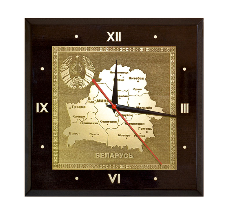 Настенные часы ''Карта РБ с гербом'' квадратные