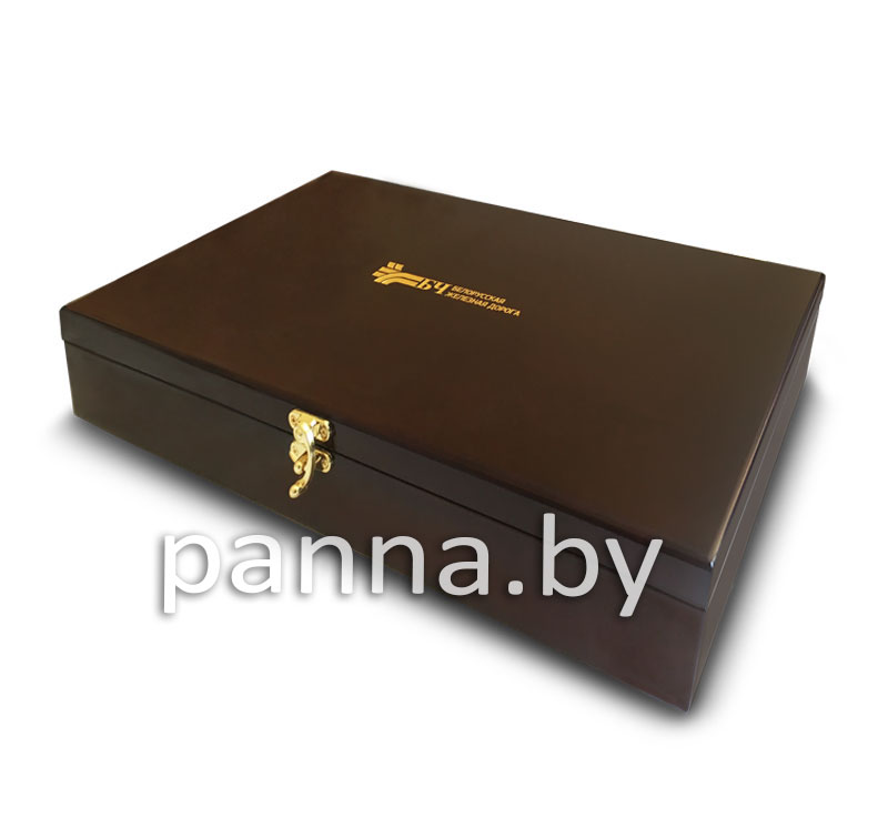 Коробка для подарков деревянная. Логотип и название организации на лицевой стороне крышки выполнены в технологии лазерной гравировки, а на внутренней стороне напечатана на металлической пластине поздравительная надпись. Внутри для сувенира предусмотрен ложемент. Эксклюзивная, стильная и неповторимая упаковка для подарка.
