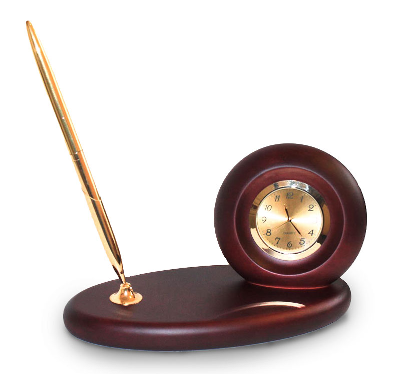 Настольный письменный набор «Компакт», изготовленный из натурального дерева с кварцевым часовым механизмом и тюльпаном под ручку. Этот письменный набор идеально впишется в интерьер вашего рабочего стола и поможет сделать его чуточку уютнее и теплее. Оригинальный, неповторимый и престижный подарок.